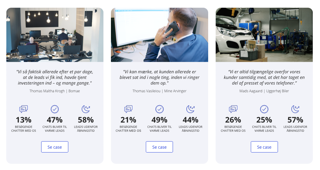 Du kan endda bruge kundecases, hvor udvalgte referencer fortæller om deres erfaringer, og hvad de synes om produktet. Dette skaber mere tillid end en skriftlig anmeldelse, da modtagerne får en idé om, hvem brugeren er, og har en chance for at relatere til ham.