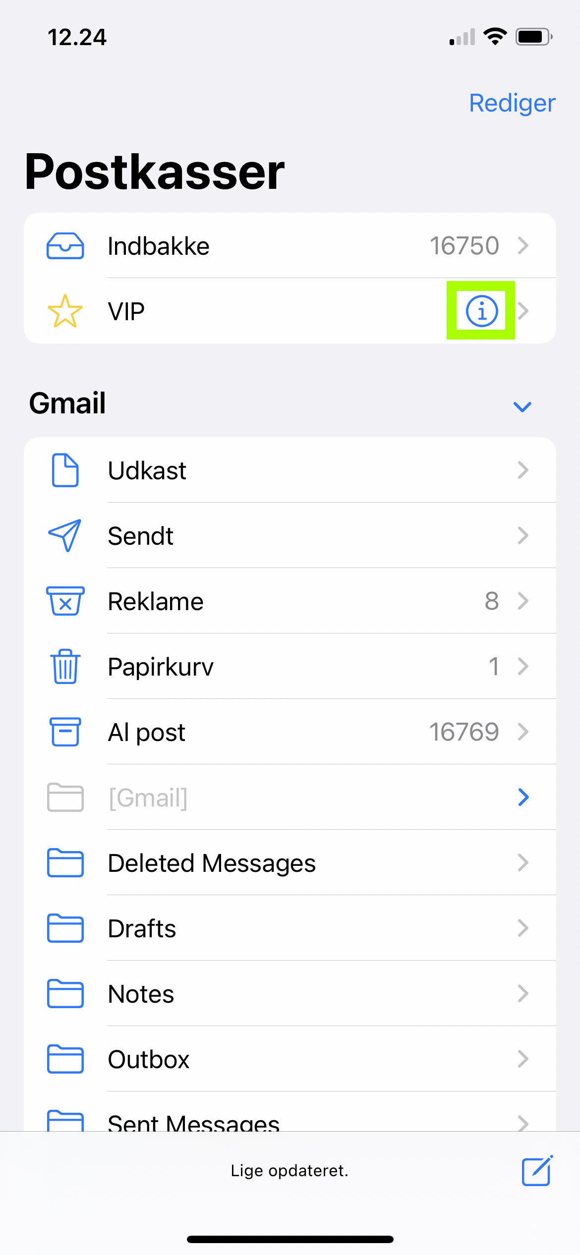 2. Hvis du i forvejen har en VIP kontakt tilføjet, skal du trykke på det lille "i".