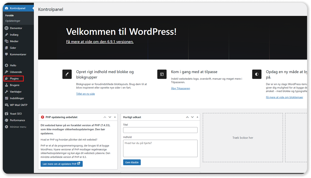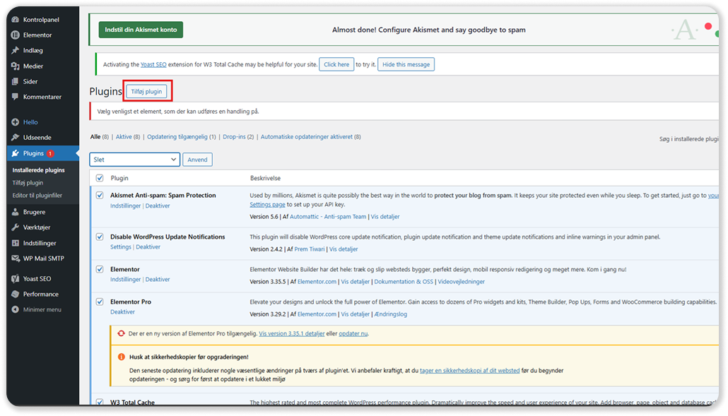 1. Ga op je Wordpress-dashboard naar „Plug-ins”
