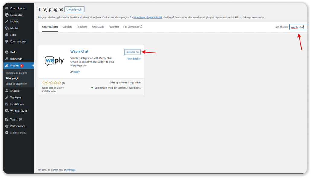 Installeer Weply op een WordPress-site
