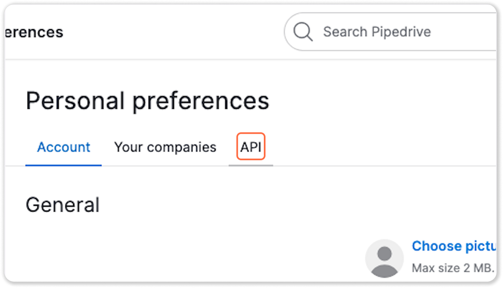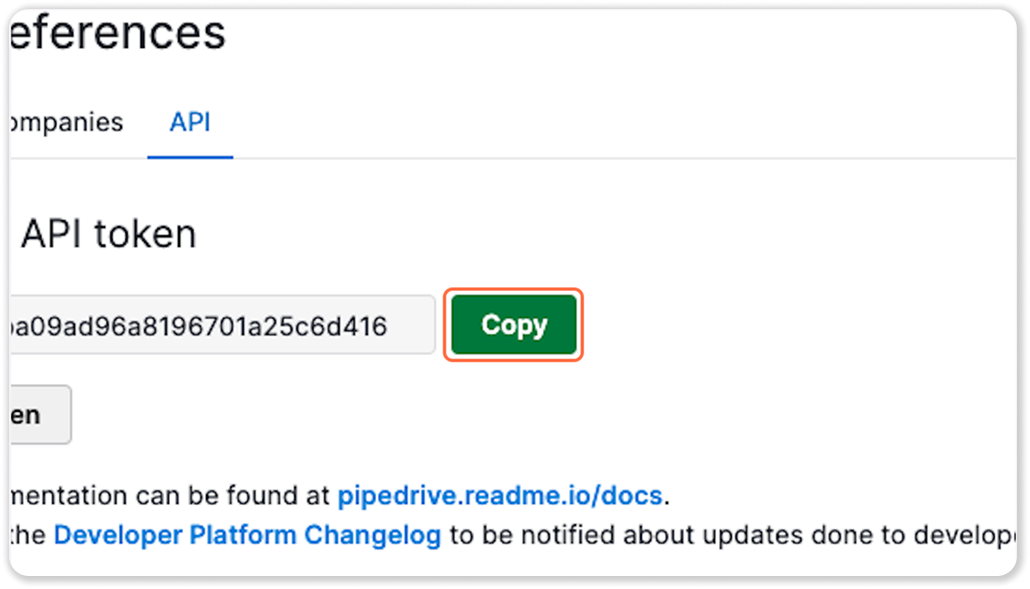 Your subdomain is the part before .pipedrive.com in your browser's address bar when you're logged in — for example, yourcompany.pipedrive.com. You'll need this alongside your API token.